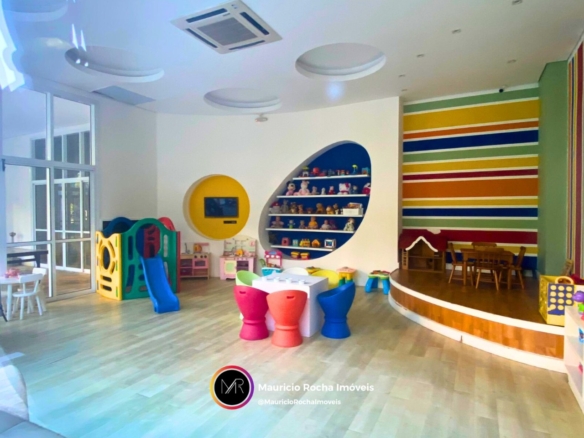 Além disso, o condomínio oferece uma excelente área de lazer com bicicletário, câmera de segurança, churrasqueira, coworking, espaço gourmet, jardim, piscina, playground, portão eletrônico, portaria 24h, quadra poliesportiva, recepção, salão de festas, salão de jogos, sauna, academia e acesso para deficientes.
