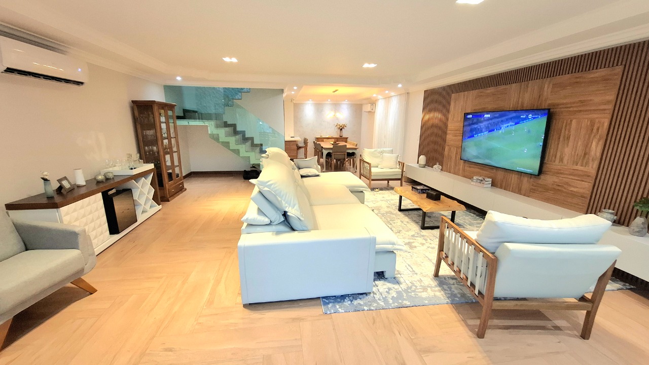 Sala super espaçosa em dois ambientes.