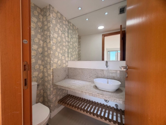 200m² de área total | 180m² de área privativa, 4 dormitórios, sendo 4 suítes, 4 banheiros no total, 2 amplas salas integradas, Varanda, cozinha planejada, Área de serviço