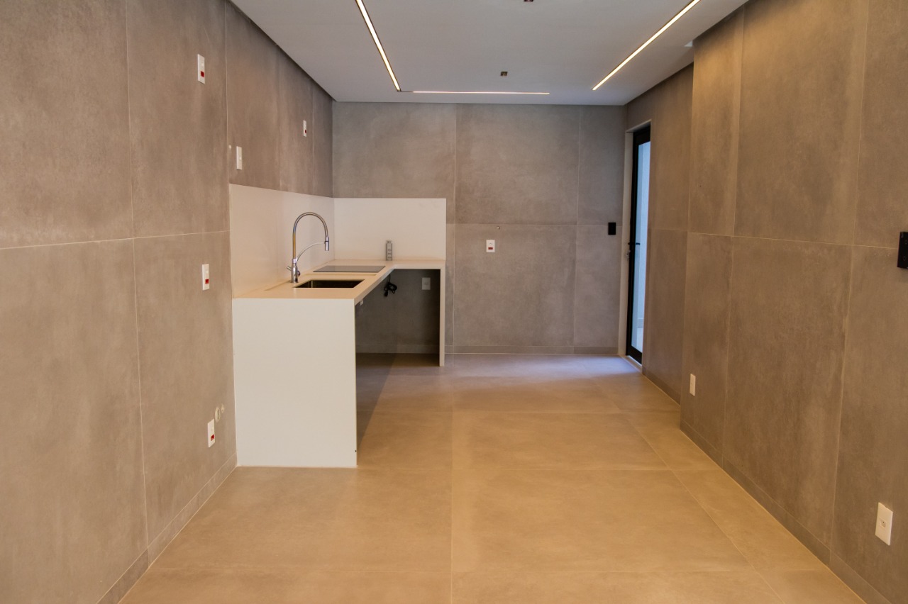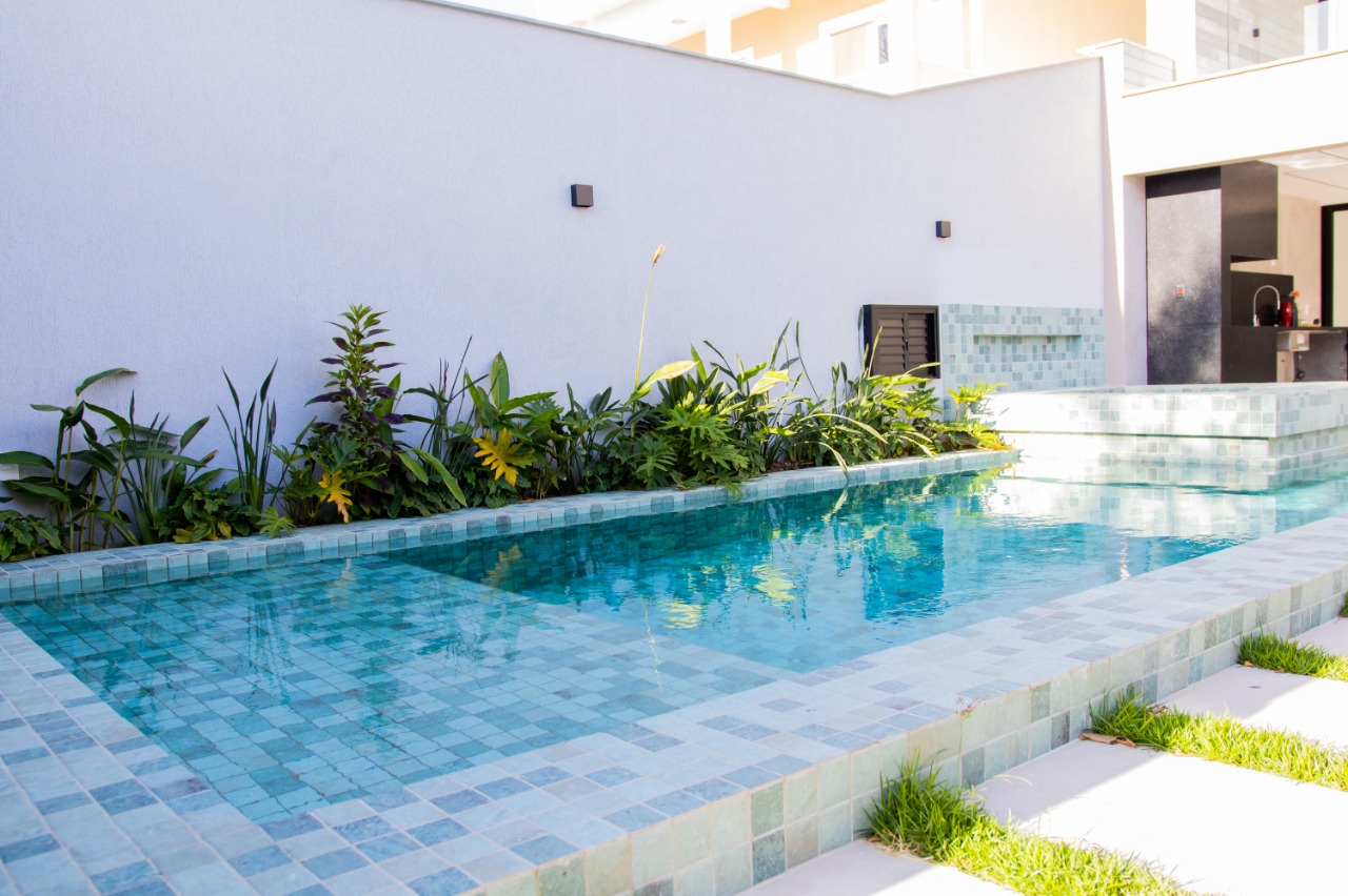 1º pavimento: possui jardim e piscina com hidromassagem aquecida, varanda gourmet com churrasqueira e banheiro, ampla sala de estar, lavabo, suíte com banheiro, copa-cozinha, lavanderia e pátio.