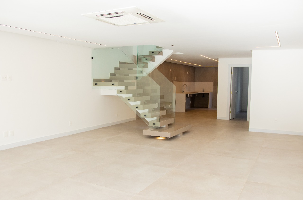 2º pavimento: possui suíte master com varanda/estar descoberto, amplo closet, banheiro com cuba dupla, dois chuveiros e hidromassagem com clarabóia. Outras duas suítes com banheiros e varandas.
